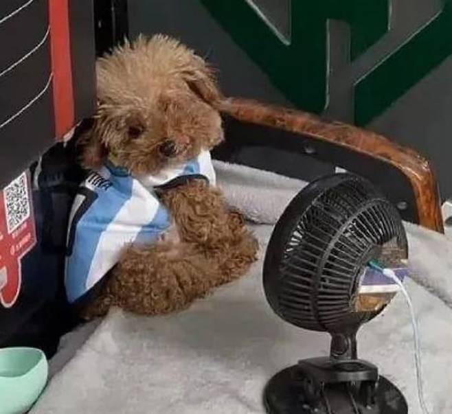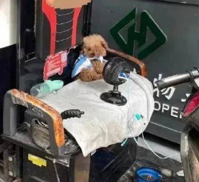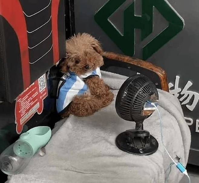 공개된 사진 속에는 강아지 앞에 작은 선풍기가 설치돼 있었는데요. 강아지는 택배 일을 하는 집사를 기다리는 동안 선풍기 바람을 쐬며 더위를 버티고 있었죠.