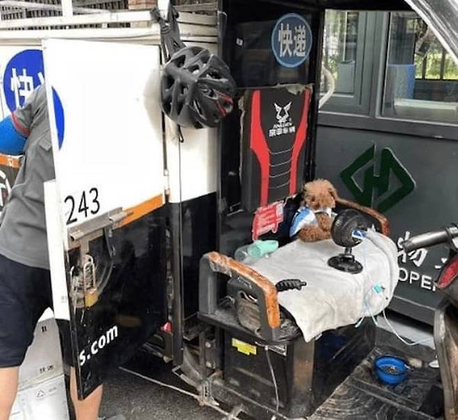 계속되는 무더위에 강아지가 진심으로 걱정됐던 택배 기사님은 고민한 끝에 강아지를 위해 운전석에 전용 선풍기를 구입해 설치해줬는데요.