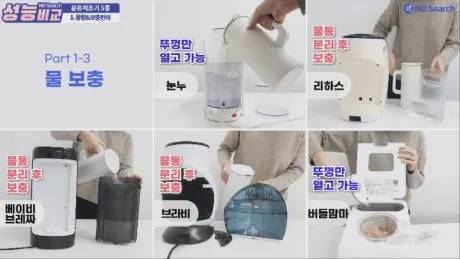 물 보충 편의성에도 차이가 있었는데, 눈누와 버들맘마의 경우 물통을 따로 분리하지 않고 바로 급수가 가능했지만, 리하스, 베이비브레짜, 브라비의 경우 물통을 분리시켜야 했으며, 특히 리하스의 경우 다른 제품 대비 패킹이 뻑뻑해서 분리하기가 조금 불편했습니다.