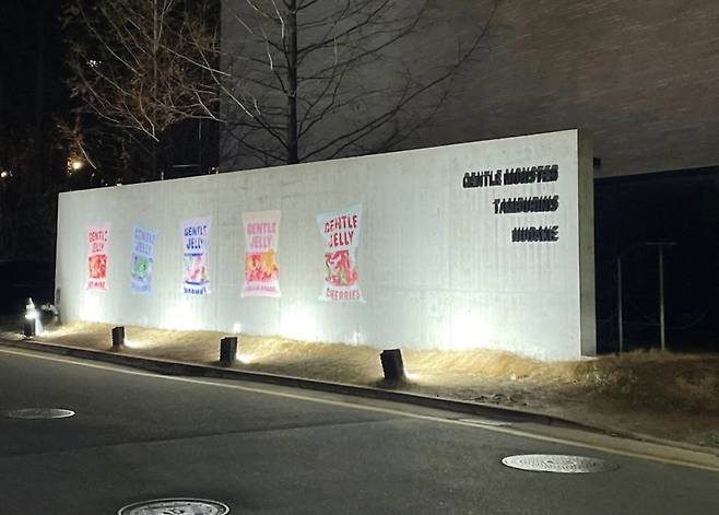 멀리서부터 건물 벽에 '젠틀몬스터 젤리 팝업스토어'를 알리는 귀여운 젤리 캐릭터들이 있어서 알아보기 쉬워요.