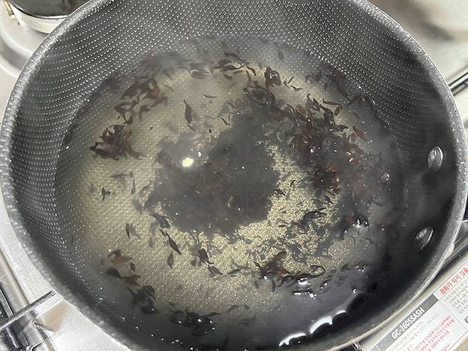 저는 건조 톳을 사용했습니다. 건조 톳은 미역처럼 불려서 요리에 넣으면 돼서 아주 간편합니다. 두부 데쳤던 물에 건조 톳 2스푼 넣고 살짝만 데쳐 주세요.