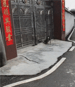 대문 틈 사이로 빼꼼히 고개를 내밀고 주인이 오는지 안 오는지 살피는 모습이 애처롭습니다.