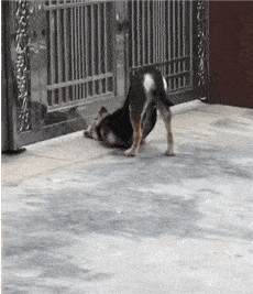 반려견이 너무 신나게 논 탓일까요? 그만 문 밖에 갇히고 말았습니다.
