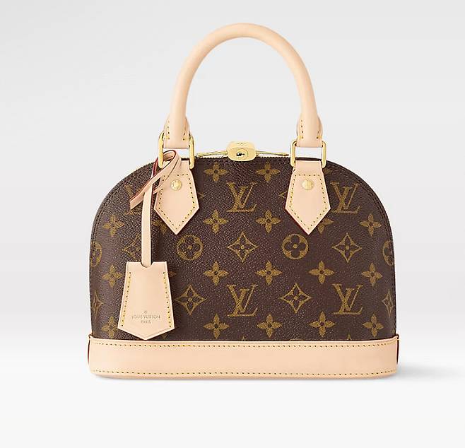 루이비통 알마 BB는 브라운 계열의 가죽 트리밍과 시그니처 모노그램 패턴이 조화롭게 어우러진 디자인으로, 유행을 타지 않는 클래식함을 갖추고 있다.