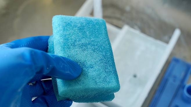 이제 부드러운 수세미로 투입구를 말끔하게 닦아 주세요. 따로 세제는 사용하지 않고 남은 식초를 이용해 닦아 주었어요. 그리고 물기가 남지 않도록 깔끔하게 말려 줍니다.