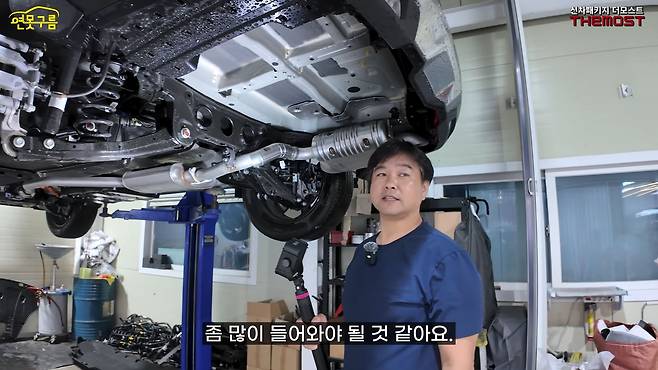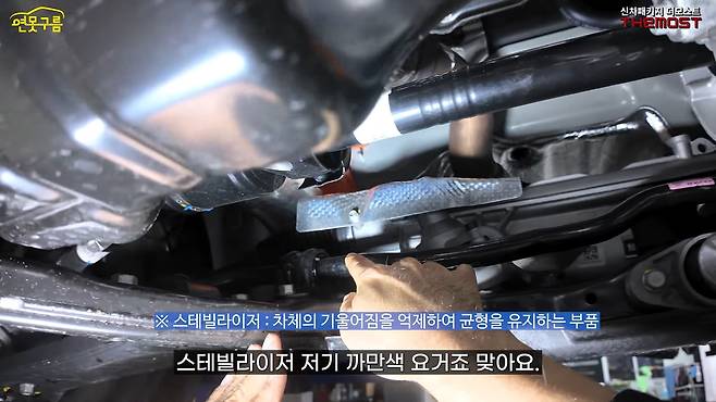 물론 아주 단단한 느낌을 선호하는 분들에게는 다소 아쉬울 수도 있겠지만, 대다수의 국내 소비자들은 부드러움을 더 선호하는 것 같습니다. 앞뒤 모두 싼타페와 부품을 공유하게 되면서 페이스리프트 모델에서는 스테빌라이저가 달라진 점은 주목할 만합니다. 현재 하부 커버를 분리해 놓은 상태이지만, 실제 차량에는 풀 언더 커버가 매우 잘 되어 있습니다. 엔진룸 하단 커버는 물론 중간 부분까지 큰 사이즈의 커버가 적용되어 하부를 꼼꼼하게 보호하고 있습니다.
