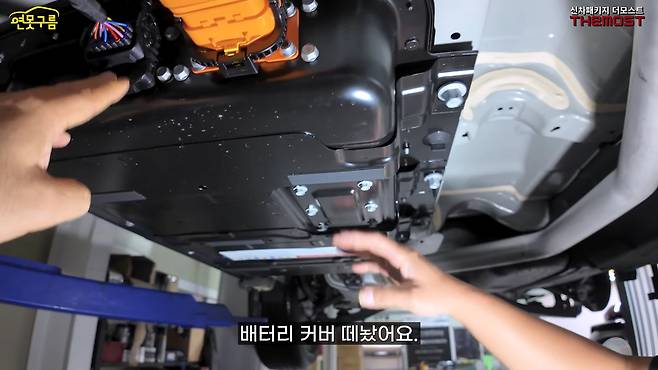 배터리 커버 또한 분리된 상태이지만, 흡음 재질이 적용된 풀 커버 형태로 되어 있어 소음 저감과 보호에 신경을 썼습니다. 현대기아차의 중형차급 이상 모델들은 대체로 풀 언더 커버를 잘 해놓는 편입니다. 하지만 방열판의 경우, 제가 항상 중요하게 생각하는 부분인데, 쏘렌토의 방열판은 촘촘함이 다소 부족해 보입니다. 좀 더 촘촘하게 보강하면 좋을 것 같다는 아쉬움이 남습니다.