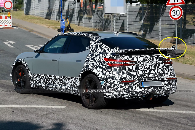 특히 눈에 띄는 건 스포일러 양 끝에 솟은 ‘뿔’ 형태의 엔드 플레이트다. 콘셉트카보다 더 크고 수직에 가까운 형태로 디자인돼 공기역학적 기능은 물론, 시각적인 존재감도 갖췄다는 평가다. 후면 범퍼 아래에는 대형 디퓨저를 적용했고, 루프에는 공기 흐름을 조절하는 핀도 장착됐다. 포르쉐 911 GT3 RS에서 영감을 받은 듯한 휠 아치 디자인도 눈에 띈다.