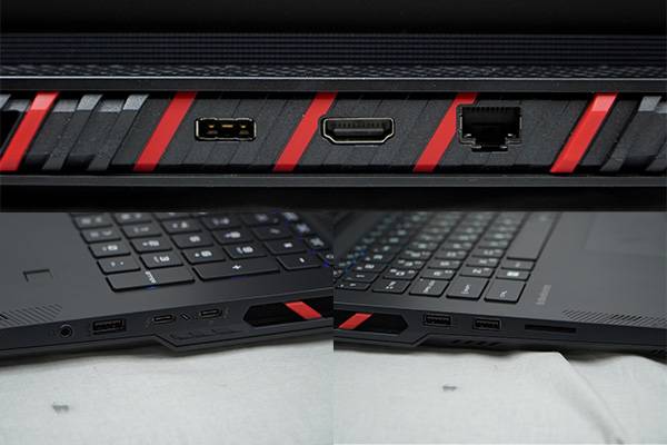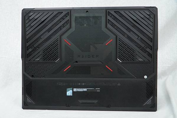 하단에는 고성능 노트북의 발열 제어를 위한 여러 모양의 통풍구가 마련되었다. 특히 MSI의 쿨러 부스트 5가 적용, 2개의 팬과 6개의 히트 파이프 설계를 통해 AAA급 게임과 무거운 작업 시에도 쾌적하게 사용 가능하다. 그밖에도 레드 포인트를 비롯해 좌우로 데칼코마니를 이루는 형태가 인상적이다.