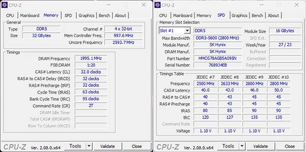 MSI 레이더 18 HX A14VIG-i9는 메모리는 SK하이닉스의 DDR5-5600 32GB를 탑재해 최상급의 면모를 보여준다. 게다가 메모리 슬롯이 총 4개이기 때문에 사용자에 따라서는 최대 192GB까지 메모리를 확장할 수 있다.