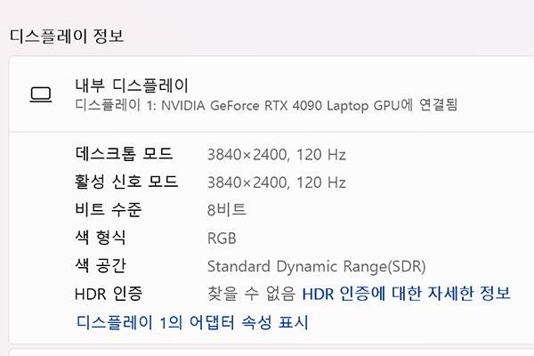 여기에 16:10 화면비에 UHD+ (3840*2400) 해상도를 지원하며 DCI-P3 100% 색 영역으로 뛰어난 색 표현력은 물론, VESA 디스플레이HDR 1000 인증을 받아 선명하게 노트북을 사용할 수 있다. 추가로 120Hz 주사율을 지원해 FPS 등의 게임을 부드럽게 플레이 가능하다.