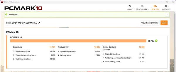 생산성 및 디지털 콘텐츠 제작, 게임 등 시스템 전반의 성능을 측정하는 PCMark10 테스트 결과는 업무용으로 얼마나 유용한지를 나타내준다. 여지껏 보여준 성능을 보면 알 수 있듯 MSI 레이더 18 HX A14VIG-i9는 당연히 높은 성능을 보여주고 있다.