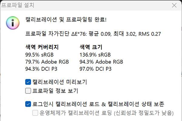 다음은 색역을 알아볼 시간이다. MSI 레이더 18 HX A14VIG-i9는 99.5% sRGB에 79.7% AdobeRGB, 그리고 94.3%의 DCI P3의 색역 커버리지를 확인할 수 있었으며 색역 크기는 각각 136.9%, 94.3%, 97%였다. 물론 색역 테스트는 환경에 따라 다르게 나올 수 있다.