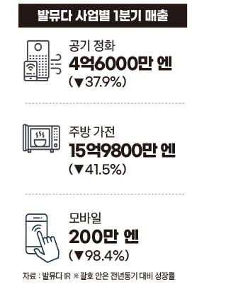 결국 발뮤다는 1분기 스마트폰 사업뿐만 아니라 모든 사업 영역에서 성장이 멈췄다. 스마트폰 사업 매출은 전년 동기 대비 98.4% 급감했고 선풍기와 공기청정기가 속한 공기 조화 사업은 매출이 전년 동기 대비 37.9% 추락했다. 발뮤다의 핵심 사업인 토스터와 전자레인지 등이 속한 주방 용품 사업은 41.5% 하락했다.