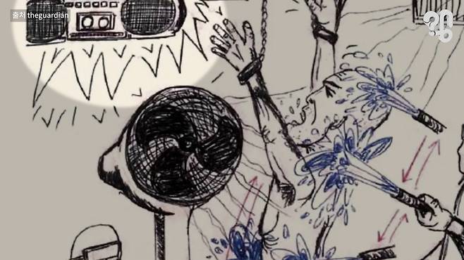 선 채로 수갑을 차고 벽에 고정돼 몇 시간 동안 크게 틀어진 아기상어 노래를 들으며 고통을 받았다는 게 이유였다. 복도에 울려 퍼질 정도로 노래를 크게 틀어놓고 고문을 받았다고 주장하는데, 어땠을지 상상하니 묘하게 기괴하긴 하다.
