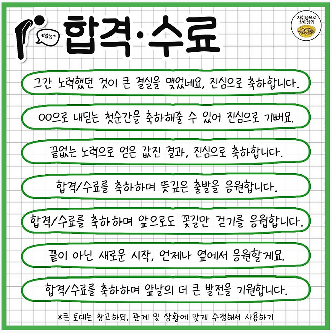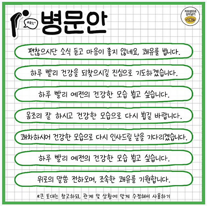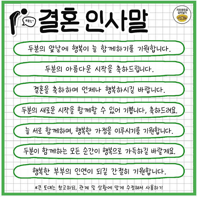 아래에 일상, 회사, 문자/카톡, 공식/격식 있는 자리, 사과나 위로 등 주요 상황별 인사말을 보기 쉽게 정리해드렸습니다.