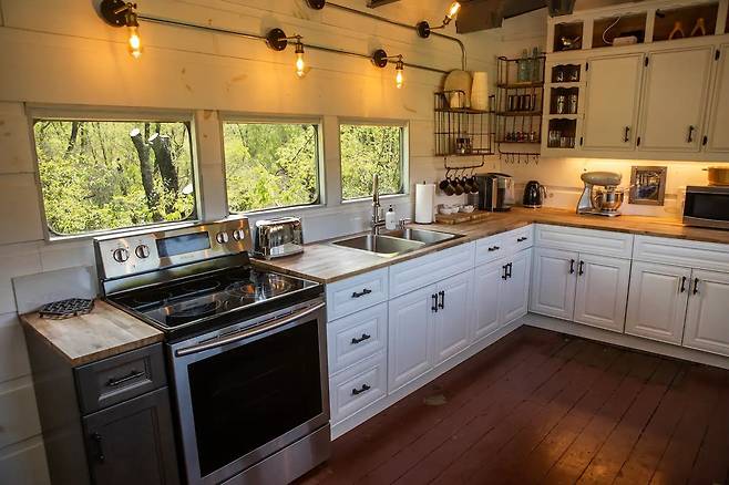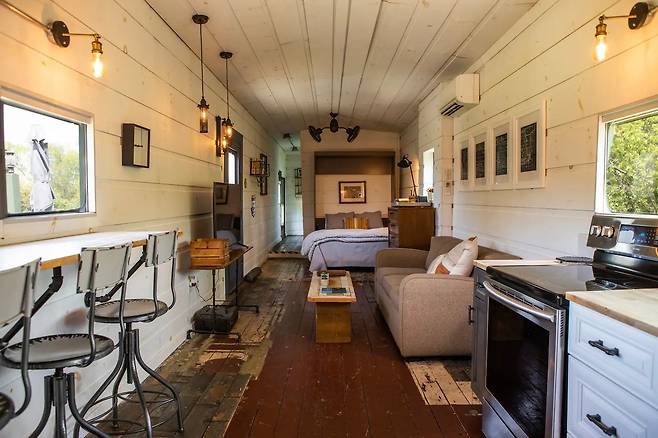 더욱이, 빈티지한 외관에도 불구하고 별장으로 변신한 객차는 대형 플라즈마 TV부터 스테인리스스틸 주방 가전제품, 에어컨, 와이파이 등에 이르기까지 모든 종류의 현대적인 편의 시설을 갖췄다.