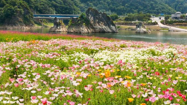 4만㎡의 드넓은 부지에 펼쳐진 형형색색의 꽃밭은 마치 한 폭의 그림처럼 장관을 이룬다. 오랜 시간 방치됐던 저수구역을 군과 K-water가 함께 복원한 이 공간은, 이제 단양의 대표 힐링 명소로 새롭게 태어났다.