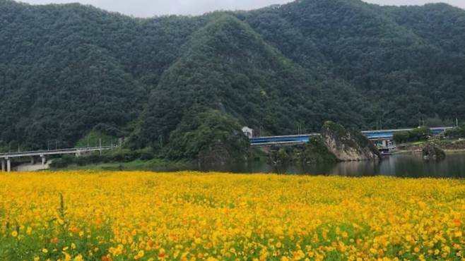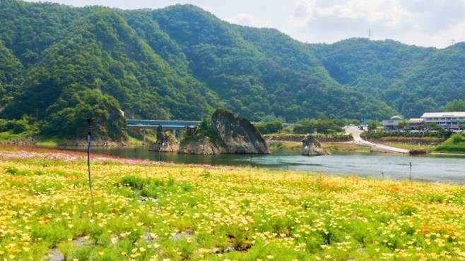 “꽃밭이라더니 이건 그냥 예술이네.” 단양 도담삼봉 건너편, 그저 스쳐 지나갔던 강변 유휴지가 완전히 달라졌다.