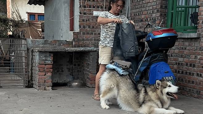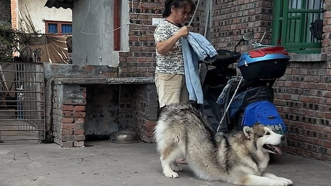 할머니는 나머지 빨래를 모두 들고 천천히 집으로 들어가셨고, 강아지는 뒤를 종종 돌아보며 자신의 '대단한' 공로를 자랑하는 듯한 모습이었습니다.