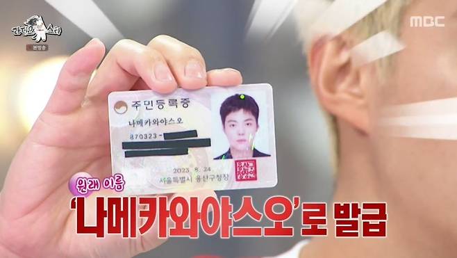 이날 3년 차 한국인이 된 강남은 주민등록증을 당당하게 공개했다. 2022년 귀화 시험에 합격한 강남은 "'강남'으로 나온 거냐"는 질문에 "아니다. 나메카와야스오, 원래 이름으로 했다. 등록할 게 너무 많아서 한번에 바꾸면 너무 힘들어서 일단 이렇게 했다"라고 밝혔다. 강남은 "용산 나 씨이다. 이제 완전 한국 사람"이라며 "이중국적 아니다"라고 강조했다.
