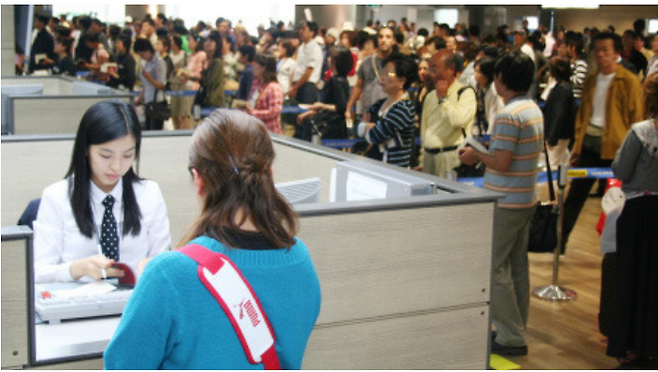 그런데 말입니다. 이렇게 빨리빨리 문화가 일상화된 한국 사회에도 기다릴 수밖에 없는 장소가 있습니다. 바로, 공항 탑승 심사입니다. 성수기 시즌의 항공편을 이용할 경우에는 티켓 발권, 출/입국 심사, 보안 검사 시, 많은 인파가 몰릴 것을 대비해 적어도 2~3시간 전에 공항에 도착하길 권합니다.