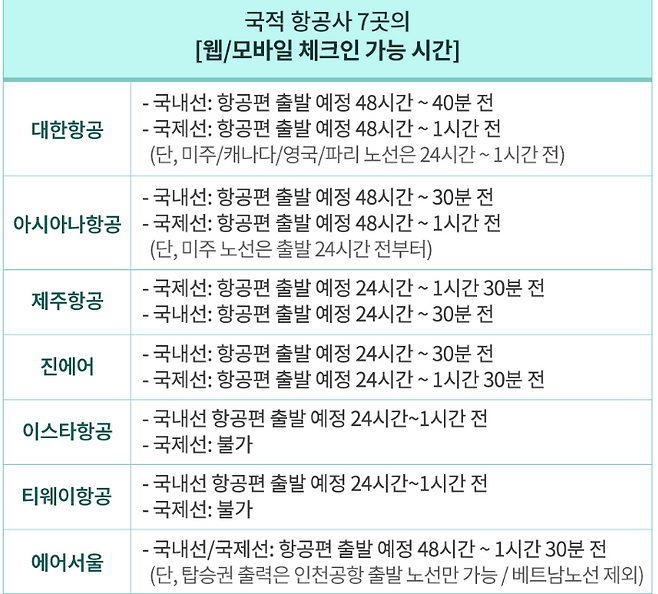 TIP : 웹/모바일 체크인 가능한 항공사(인천국제공항 홈페이지 기준)
