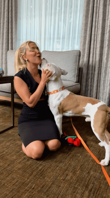 만차스는 LA 산불로 인해 보호소가 포화 상태가 되면서 베스트 프렌즈 애니멀 소사이어티(Best Friends Animal Society) 에 의해 구조된 1,700마리 동물 중 하나였습니다. 최근까지도 혼란스러운 환경을 겪었던 그는 이날 밀리와 함께 ‘디스 오어 댓(This or That)’ 게임을 하며 평온한 시간을 보냈습니다.
