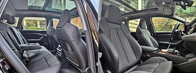 단순히 시승 간 주행 거리와 남은 주행가능 거리를 더하면 약 450㎞ 정도로, 출발 전 주행 가능 거리에 비해 약간 차이가 나지만 이는 에어컨 가동에 따른 주행거리 단축 때문이다. 시승 간 에어컨을 가동하니 작동 전에 비해 주행 가능 거리가 약 55㎞ 정도 줄었다. 이를 감안하면 아우디 Q6 트립 컴퓨터에 표시되는 주행 가능거리는 대체로 맞는 셈이다. 전비는 5.0㎞/㎾h를 기록했다. 중형 SUV임을 고려하면 전비는 뛰어난 편에 속한다.