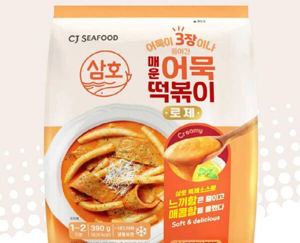 ‘삼호 매운어묵 로제떡볶이’는 중독성 있는 매콤한 맛을 가진 로제소스의 떡볶이다. 떡볶이 양념이 잘 배는 삼호어묵 3장을 넣은 밀키트로, 여타 떡볶이 제품보다 어묵의 비중이 많은 편이다. 패키지에는 130g의 밀떡, 삼호어묵, 그리고 떡볶이용 로제소스가 140g 들어있다. 로제떡볶이가 느끼하다고 생각하는 이들에게 추천할만한 밀키트다. 본 제품의 온라인 최저가는 7천 원 중반대로 확인된다.