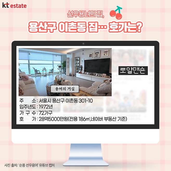 그렇다면 선우용녀는 노년에 이처럼 여유롭고 품격 있는 삶을 누릴 수 있었을까요? 그 답은, 오랜 시간에 걸쳐 구축해 놓은 탄탄한 부동산 자산에 있습니다. 우선 그녀의 아파트는 서울 용산구 이촌동에 자리한 ‘로얄맨숀’으로 알려졌습니다.
