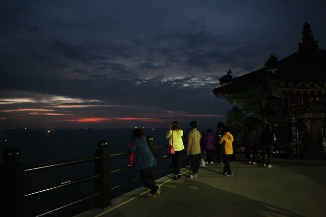 바다와 사찰이 어우러진 독특한 풍경을 자랑하는 부산 명소인 해동용궁사는 해돋이 명소로 손색이 없는데요. 사찰 바로 앞에서 떠오르는 태양은 마치 바다 위에서 솟아오르는 것처럼 보이며, 붉게 물든 하늘과 사찰의 전경이 어우러져 신비로운 분위기를 자아냅니다.