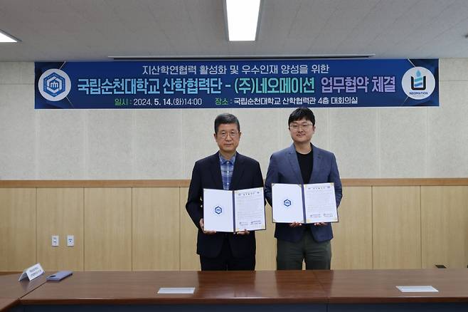 반려동물 장묘 서비스 스타트업 네오메이션과 국립순천대학교 산학협력단이 '지산학연협력 활성화 및 우수인재 양성'을 위한 업무협약을 체결했다고 20일 밝혔다.