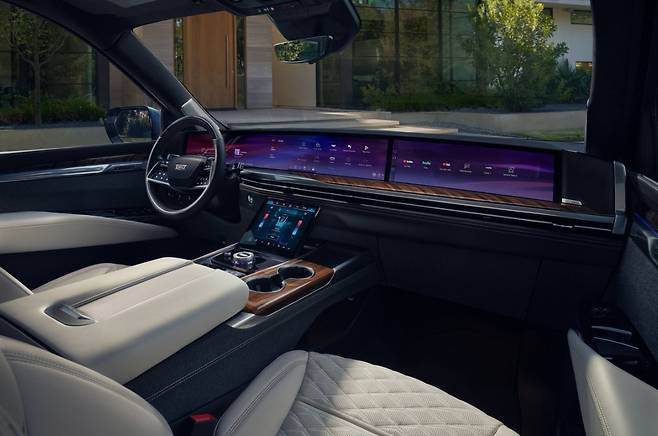 특히, 더 뉴 에스컬레이에는 한쪽 필러에서 반대편 필러까지 이어지는 `필라 투 필라 55인치 커브드 LED 디스플레이`가 탑재된 점이 눈길을 사로잡는다. 이를 바탕으로 실내 전체를 압도하는 아름다운 디자인이 주목되며, 에스컬레이드만의 독보적인 실내 분위기를 통해 차원 높은 실내 경험을 선사할 것으로 기대된다.