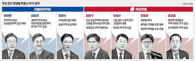 더불어민주당과 국민의힘 대통령 선거 경선에 나선 후보들이 부동산 공급 확대를 주요 공약으로 제시했다.