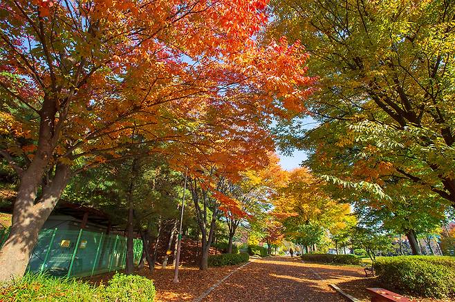 노적봉공원은 수리산에서 뻗은 산줄기의 끝자락, 산의 형태가 마치 짚가리를 쌓아둔 것처럼 보여 ‘노적봉’이라 불립니다. 공원은 부지 면적 64만 3,000㎡, 둘레 약 2.6km의 순환 산책로가 조성되어 있어 가볍게 걸으며 사계절의 변화를 느끼기에 좋습니다.