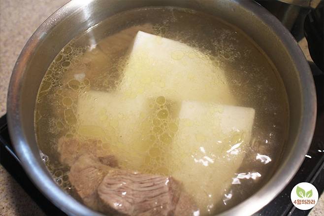 → 냄비에 물 2L와 고기를 넣고 센 불에서 끓여 거품은 모두 걷어냅니다.