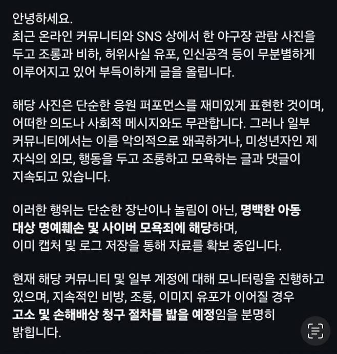 신상 유출과 가족에 대한 언급이 이어지자, 해당 팬의 부모님이 직접 온라인 커뮤니티에 해명글을 올리거나 중재를 요청하는 등 사태 진화에 나섰습니다. 이러한 부모님의 개입은 자녀를 보호하고 피해를 최소화하기 위한 조치였습니다. 시간이 지나면서 일부 팬들과 커뮤니티 이용자들 사이에서 자성의 목소리가 확산되었고, 관련 게시물들이 삭제되며 논란은 점차 수그러들었습니다.