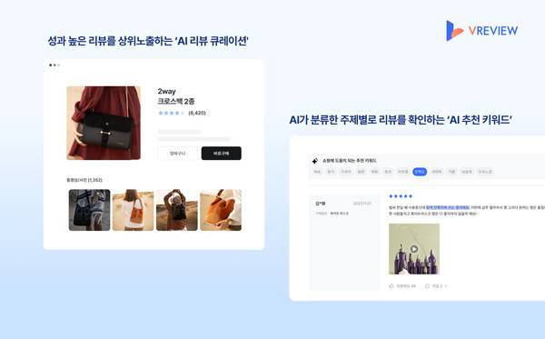 LLM이 적용된 브이리뷰는 고객 경험을 효과적으로 활용하기 위해 다양한 기능을 갖췄다. 'AI 추천 키워드' 기능은 LLM이 상품별 리뷰를 분석하고 상품 특성에 맞는 주제별로 리뷰 키워드를 추출해 개별 상품 상세 페이지에 노출시킨다. 고객이 관심있는 키워드를 선택하면 관련 리뷰만 따로 볼 수 있다. 쇼핑몰에 '평소 입는 옷보다 한 치수 크게 나온 것 같고 색은 사진과 동일해요'라는 리뷰가 등록됐다면 이를 LLM이 사이즈와 색상 리뷰로 분류한다. 이후 이 옷의 리뷰 키워드 중 사이즈를 선택한 고객은 사이즈 관련 리뷰만 볼 수 있게 된다.