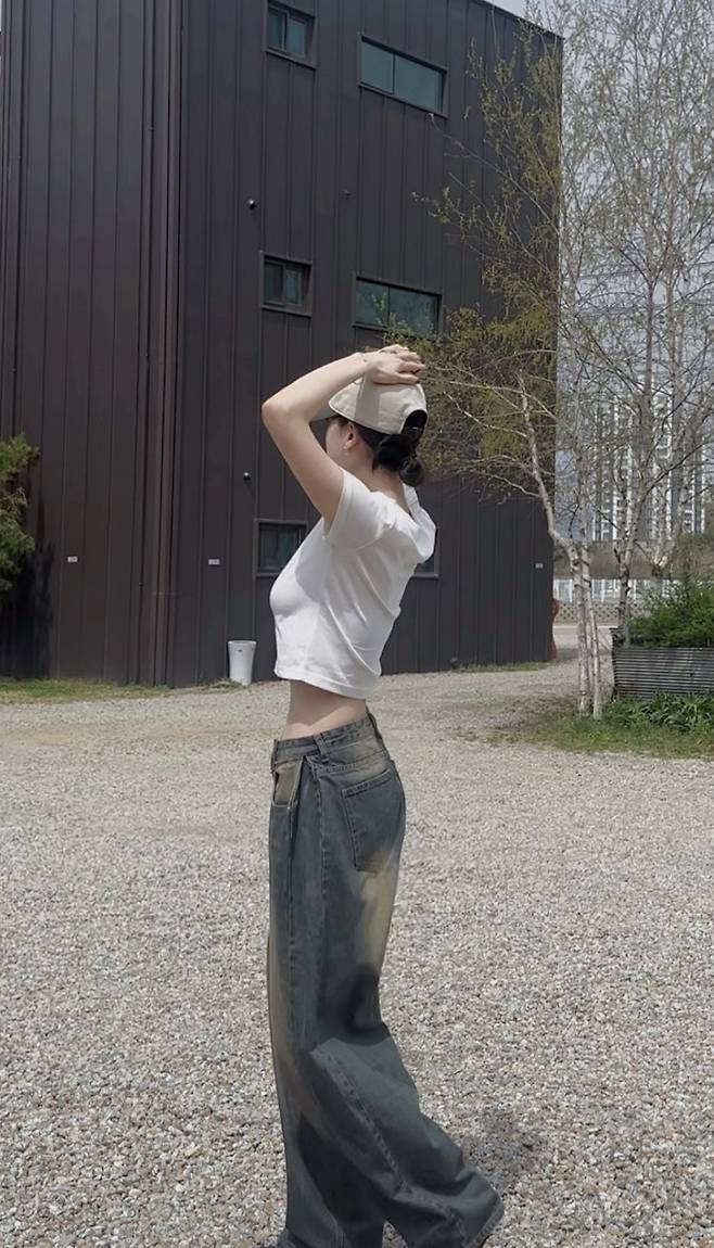 모자 하나에 포인트 크롭티만 입어도 분위기가 충분히 살아나요.