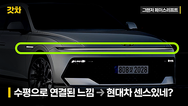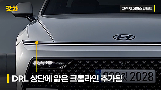 특히 아이오닉6가 좌우로 나뉜 DRL 구조를 보여줬다면, 신형 그랜저는 한 줄로 길게 이어진 심리스 호라이즌 램프를 채택했습니다.램프 위에는 얇은 크롬 라인이 더해져 한층 더 고급스러운 디테일이 살아납니다.