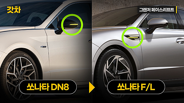 사이드 리피터 위치 변화, 사이드 미러에서 휀더쪽으로!