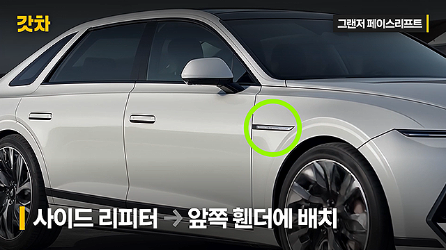 이 사이드 리피터는 전면 DRL과 동일한 수평선상에 위치해 시각적으로도 자연스러운 연속성을 가지며, 제네시스를 연상케 하는 고급스러움을 더합니다.