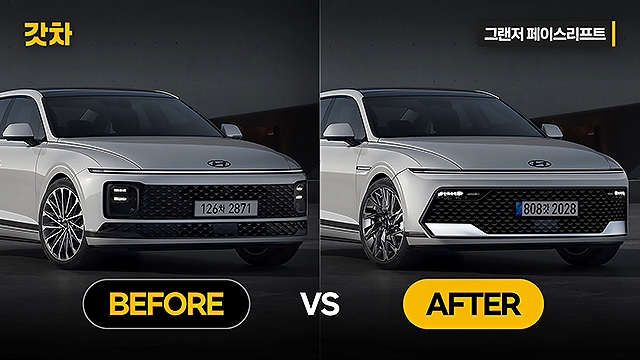 신형 그랜저는 전반적으로 기존 모델보다 날렵하고 정돈된 느낌을 강하게 줍니다.전면부의 통합형 디자인, 얇아진 램프, 새로운 공기 흡입구, 그리고 리피터의 위치 변경까지! 이번 페이스리프트는 외형적인 면에서 분명한 진화를 보여주고 있습니다.