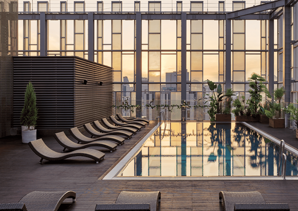 서울 중심부에 위치한 노보텔 앰배서더 서울 동대문은 도심 속 럭셔리한 힐링 공간인데요. 이 호텔의 실내 수영장은 대형 규모로, 도심 한가운데에서 프라이빗한 물놀이를 즐길 수 있는 고급스러운 분위기를 갖추고 있습니다. 유리천장 구조로 설계되어 낮에는 햇살이, 밤에는 도심의 야경이 자연스럽게 들어오는데요. 실내이지만 개방감이 뛰어난 구조입니다.