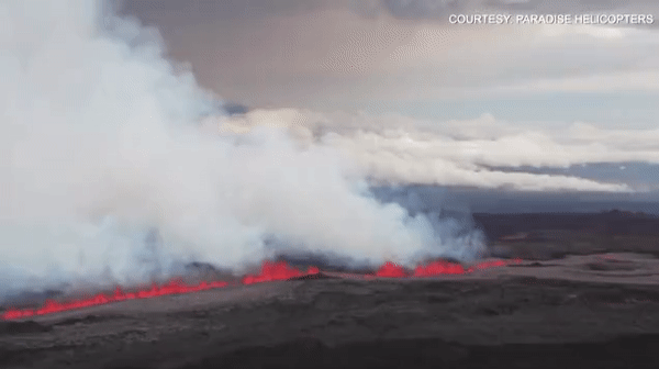 먼저 미 국립해양대기청(NOAA)이 운영하는 기상위성 GOESWest로 촬영한 적외선 영상을 보면 화산재와 연기를 뿜어내며 폭발하는 마우나로아 화산의 모습이 생생히 확인된다.
