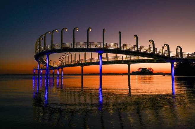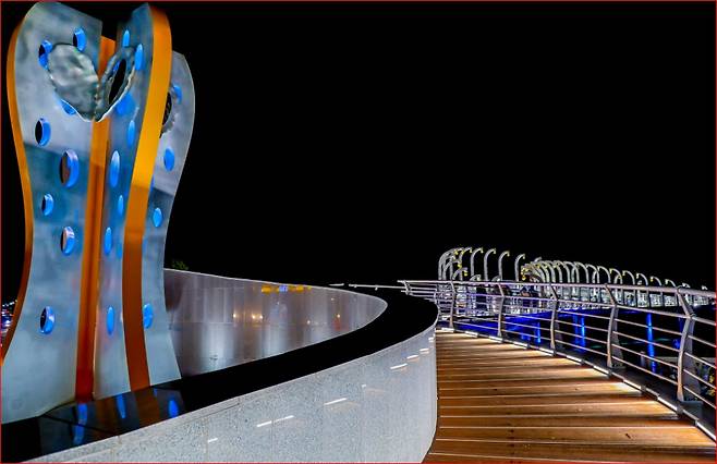 수평선 너머로 태양이 자취를 감추면, 탐방로 바닥과 난간을 따라 설치된 화려한 야간 조명이 하나둘 켜집니다. 해안 덱과 조화롭게 어우러진 조명은 바다 위에 수 놓인 은하수처럼 반짝이며 몽환적인 분위기를 연출합니다. 칠흑 같은 바다 위에 떠 있는 빛의 길을 걷는 경험은 연인들에게는 로맨틱한 추억을, 가족들에게는 특별한 밤의 산책을 선물합니다.