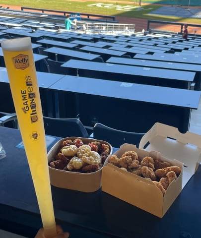 수원 KT위즈파크에는 ‘진미통닭’과 ‘보영만두'등 소문난 지역맛집이 많이 입점되어 있습니다. 특히 ‘진미통닭’은 수원 통닭거리에서 30년 넘게 명맥을 이어온 전국구 맛집으로, KT위즈파크 직영점까지 단 두 곳만 운영 중인 맛집이라 합니다.