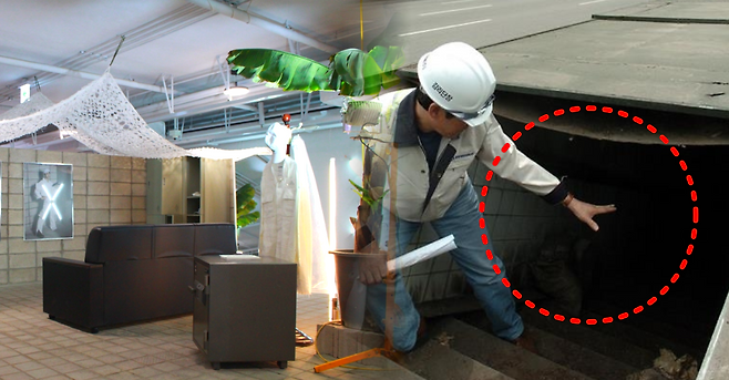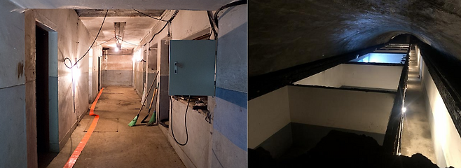 가파른 계단을 따라 내려가보니 오른편엔 VIP가 사용했을 것으로 추정되는 20여 평(약 66㎡)의 공간이 드러났고, 그 안에는 화장실은 물론 쇼파와 샤워장도 갖춰져 있어 모두를 놀라게 했죠. 왼편엔 이보다 훨씬 넓은 180여 평(약 595㎡)의 공간에는 기계실과 화장실, 그리고 철문으로굳게 닫힌 2개의 출입문이 더 있었습니다.
