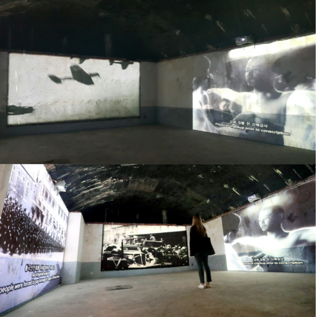 방공호 관람 신청은 공공서비스예약 누리집에서 가능한데요. 식민지 말기에 암울했던 우리의 상황을 영상, 조명, 음향 등을 이용해 방공호의 느낌을 살리고 미디어아트를 이용 상징적으로 표현함과 동시에 다큐멘터리 영상자료도 볼 수 있습니다.
